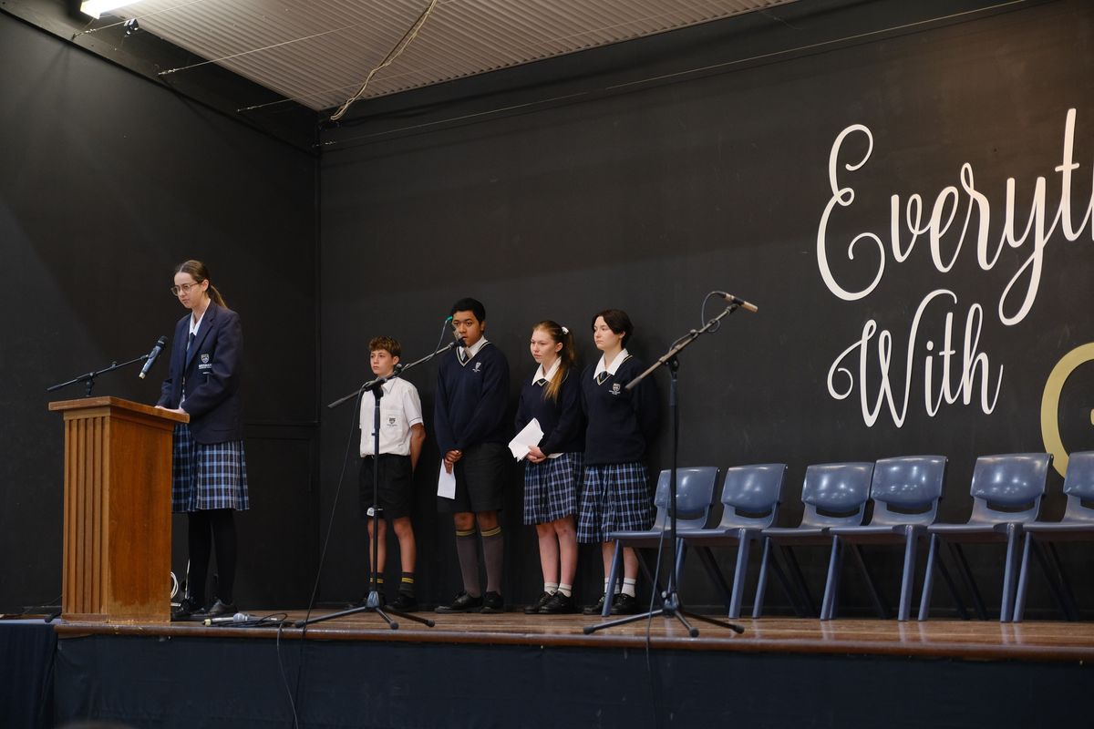 Finally, College captains Mian and Oliver drew attention to the Biblical parallels of reconciliation, connecting the teachings of the Bible to the urgent need for reconciliation between Australia's First Nations peoples and the broader population. They urged everyone to work towards the healing historical wounds, forging a more inclusive society, and embodying the transformative power of God's reconciling love.
