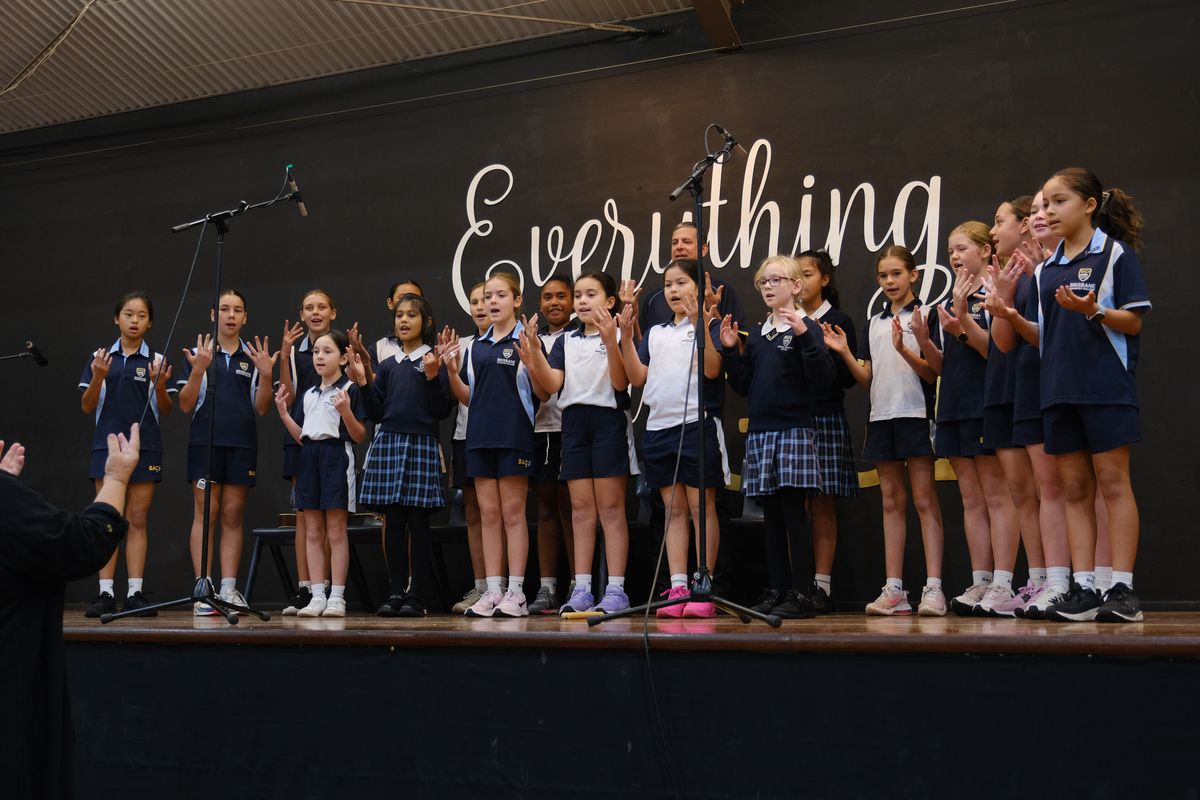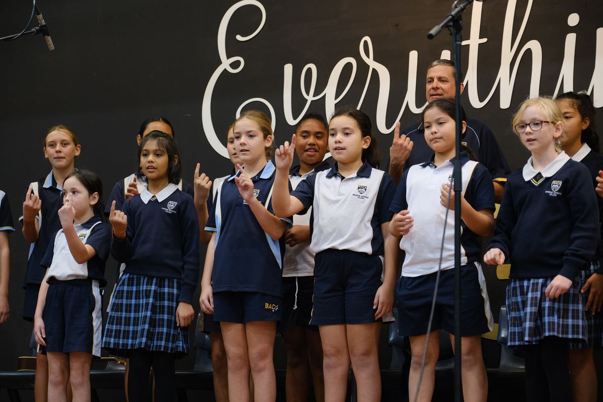 The Primary choir took the audience on an emotional journey through music, combining voice with Auslan sign language. They were joined by Auslan-using groundsman, Mr Herbert, who had taught the choir how to sign. Their performance of Inanay, a song thought to be in Yorta Yorta (the language of one of the Aboriginal tribes of Victoria) is believed to be about a goanna (gupuana). The 'choo' is shooing the goanna away. The choir then followed this with I am Australian, reinforcing the values of inclusivity and unity.