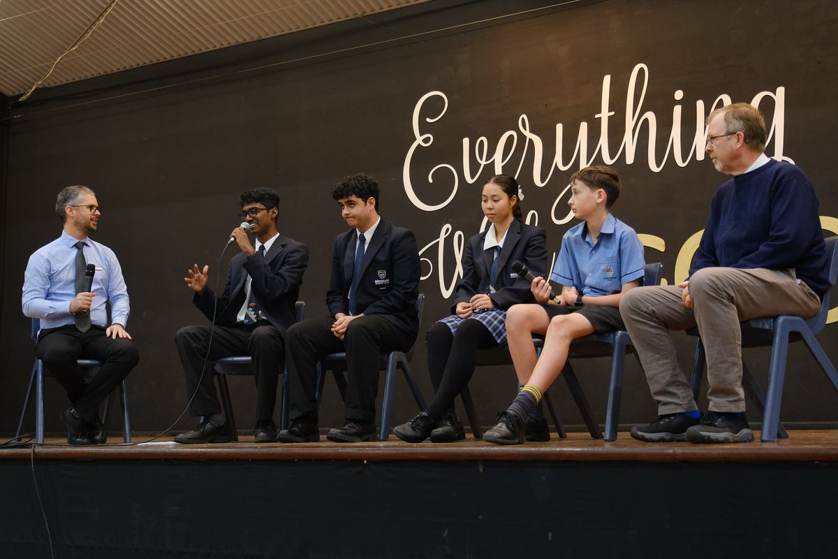 Mr. Jackson invited Secondary students Sanuka, Caleb, Odessa, and Arlo, as well as Mr. Murray, to share practical steps towards reconciliation. The discussion encouraged students and teachers to reflect on their personal role in promoting reconciliation, both within the school community and beyond. The panelists underscored the power of education and empathy as pivotal catalysts for positive change, inspiring everyone present to take action.